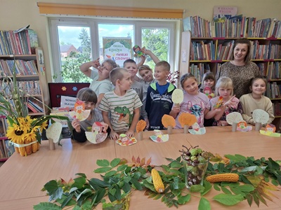 W dniu 26.09.2025 r. bibliotekę w Lipinach odwiedziły przedszkolaki z grupy Myszki Miki z Przedszkola Samorządowego w Margoninie, aby wspólnie odchodzić Dzień Jabłka. Dzieci dowiedziały się, dlaczego warto jeść jabłka i jak wiele odmian tych owoców możemy spotkać. Podczas spotkania nie zabrakło literackich i muzycznych akcentów. Wiersz Jana Brzechwy „Entliczek-pentliczek” wprowadził przedszkolaki w świat zabawy słowem, a piosenka o jabłuszku porwała najmłodszych do wspólnego tańca i śpiewu. Dużą atrakcją okazało się własnoręczne przygotowanie świeżego, pachnącego soku jabłkowego, który wszystkim bardzo smakował.