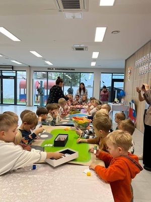 Na zakończenie spotkania przedszkolaki pokolorowały wspólny plakat, który z dumą zabrały ze sobą do przedszkola.