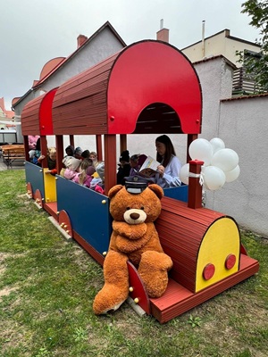 Dzieci zasiadły w naszej bibliotecznej lokomotywie i z zainteresowaniem wysłuchały wiersza Juliana Tuwima „Lokomotywa”. Za uważne słuchanie otrzymały bilety czytelnicze uprawniające do dalszej podróży z książką. Na zakończenie ozdobiły wagoniki podczas części plastycznej.