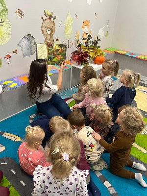 W dniu 21.10.2025 r. margonińską bibliotekę odwiedziły przedszkolaki z grupy "Czerwonego Kapturka" z Przedszkola Samorządowego w Margoninie, by wziąć udział w kolejnym spotkaniu z cyklu głośnego czytania.