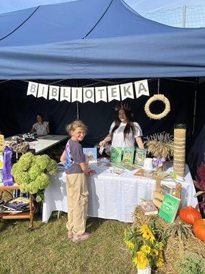 Podczas Dożynek Gminnych w Adolfowie, które odbyły się 30.08.2025 r. jednym z punktów programu było stoisko przygotowane przez Miejsko-Gminną Bibliotekę Publiczną w Margoninie, która zaprezentowała swoją ofertę, promując czytelnictwo i zachęcając mieszkańców do korzystania z zasobów biblioteki. Na stoisku można było zapoznać się z nowościami wydawniczymi – zarówno z literaturą piękną, jak i popularnonaukową, w tym publikacjami tematycznymi związanymi z rolnictwem i obszarami wiejskimi.