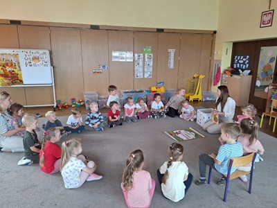 W dniu 16.09.2025 r. bibliotekarka z margonińskiej biblioteki wyruszyła z wyjątkową wizytą do Przedszkola Samorządowego w Margoninie do grup przedszkolnych: Smerfów, Wróbelka Elemelka, Muminków, Misia Uszatka, Czerwonego Kapturka, Kubusia Puchatka, Reksia oraz Krasnala Hałabały.
