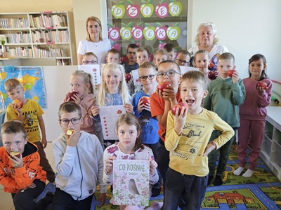 Podczas spotkania dzieci miały okazję poznać wiele ciekawostek o jabłkach, obejrzeć prezentację poświęconą temu świętu oraz wysłuchać fragmentu książki Katariny Michalicyny i Olega Buły „Co rośnie w sadzie”. Nie zabrakło także zajęć praktycznych – uczniowie wykonywali tematyczne karty pracy, które utrwaliły zdobytą wiedzę.