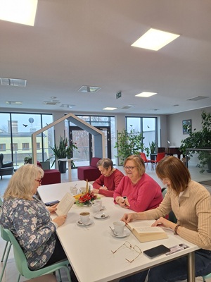 W dniu 01.12.2025 r. w margonińskiej bibliotece odbyło się spotkanie grupy "Teatru Czytanego", podczas którego kontynuowaliśmy czytanie powieści Olgi Tokarczuk pt. "Prowadź swój pług przez kości umarłych".