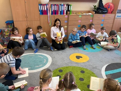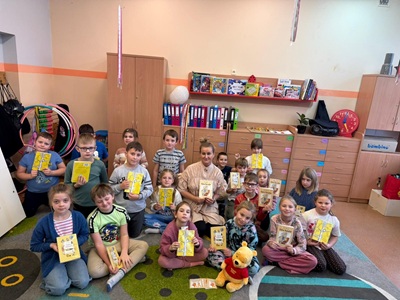 W dniu 02.12.2025 r. bibliotekarka z Miejsko-Gminnej Biblioteki Publicznej w Margoninie miała ogromną przyjemność odwiedzić klasę IIc w Szkole Podstawowej im. Mikołaja Kopernika w Margoninie. Podczas spotkania wraz z uczniami przeczytała jeden z rozdziałów książki pt. "Kubuś Puchatek" autorstwa A. A. Milne.