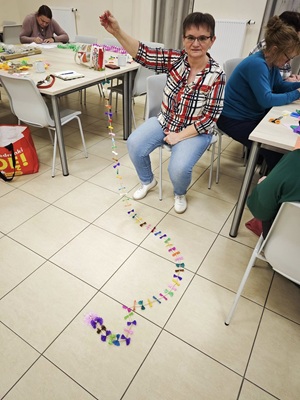 Panie z Koła Gospodyń Wiejskich wykonały tradycyjny, wielobarwny łańcuch choinkowy ze słomy i bibuły – wyszedł naprawdę przepiękny!