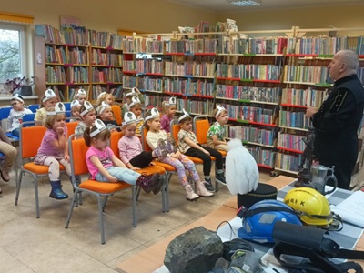 W dniu 02.12.2025 roku bibliotekę w Radwankach odwiedził wyjątkowy gość - górnik, pan Mirosław Adamik. W spotkaniu uczestniczyła grupa "Pszczółki Mai" z przedszkola w Radwankach. Pan Mirek zaprezentował przedszkolakom swój strój galowy oraz ciekawie opowiedział o pracy w kopalni. Przywiózł ze sobą elementy wyposażenia górnika: kaski, szelki, maskę przeciwpyłową oraz torbę. Każdy z przedmiotów omówił i zaprezentował dzieciom. Nie zabrakło opowieści o patronkach górnictwa - św. Barbarze i św. Kindze. Przedszkolaki z dużym zainteresowaniem słuchały pana Mirosława i chętnie zadawały pytania. Na zakończenie spotkania wykonaliśmy wspólne zdjęcie.
