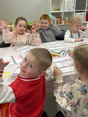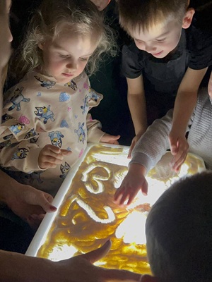 Na zakończenie dzieci puściły wodze fantazji i narysowały własne bajki na podświetlonym ekranie, który każdy może zrobić sam w domu oraz na papierowej "kliszy", tworząc małe dzieła sztuki.