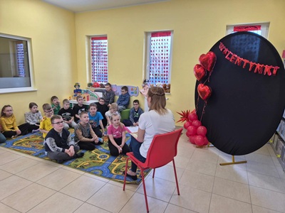 W dniu 11.02.2026 r. w bibliotece w Lipinach klasy I i II ze Szkoły Podstawowej w Lipinach świętowały Walentynki.
