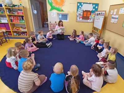 Na początku spotkania dzieci z zainteresowaniem wysłuchały opowiadania "Franklin mówi kocham Cię" autorstwa Paulette Bourgeois. Historia stała się inspiracją do rozmowy o miłości - o tym, jak można ją okazywać najbliższym. Przedszkolaki chętnie opowiadały w jaki sposób pokazują uczucia swoim rodzicom - poprzez przytulanie, pomoc w codziennych obowiązkach czy własnoręcznie wykonane laurki.