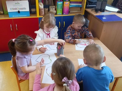 Na zakończenie spotkania dzieci pokolorowaly piękne serduszka, które podarują mamie i tacie jako wyraz swojej miłości.